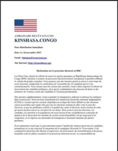 Les États-Unis ont exprimé leur préoccupation quant à la crédibilité du processus électoral en République démocratique du Congo (RDC), à